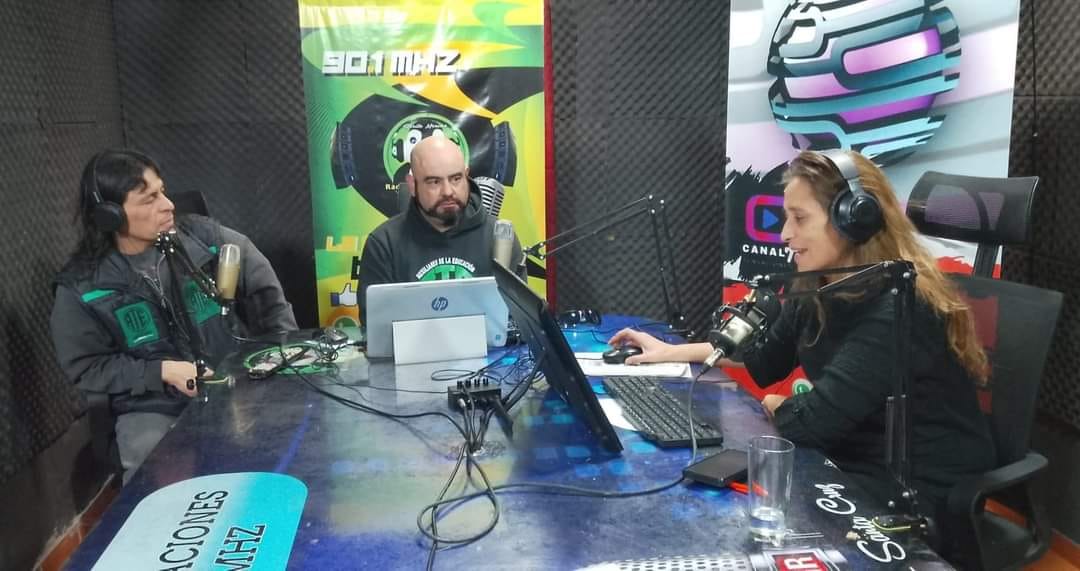 El Secretario de Seguridad y Salud Laboral del Consejo Directivo Provincial de ATE Santa Cruz, compañero Héctor Ampuero y el Secretario General de ATE Gobernador Gregores visitaron los estudios del multimedio Sensaciones de Perito Moreno.