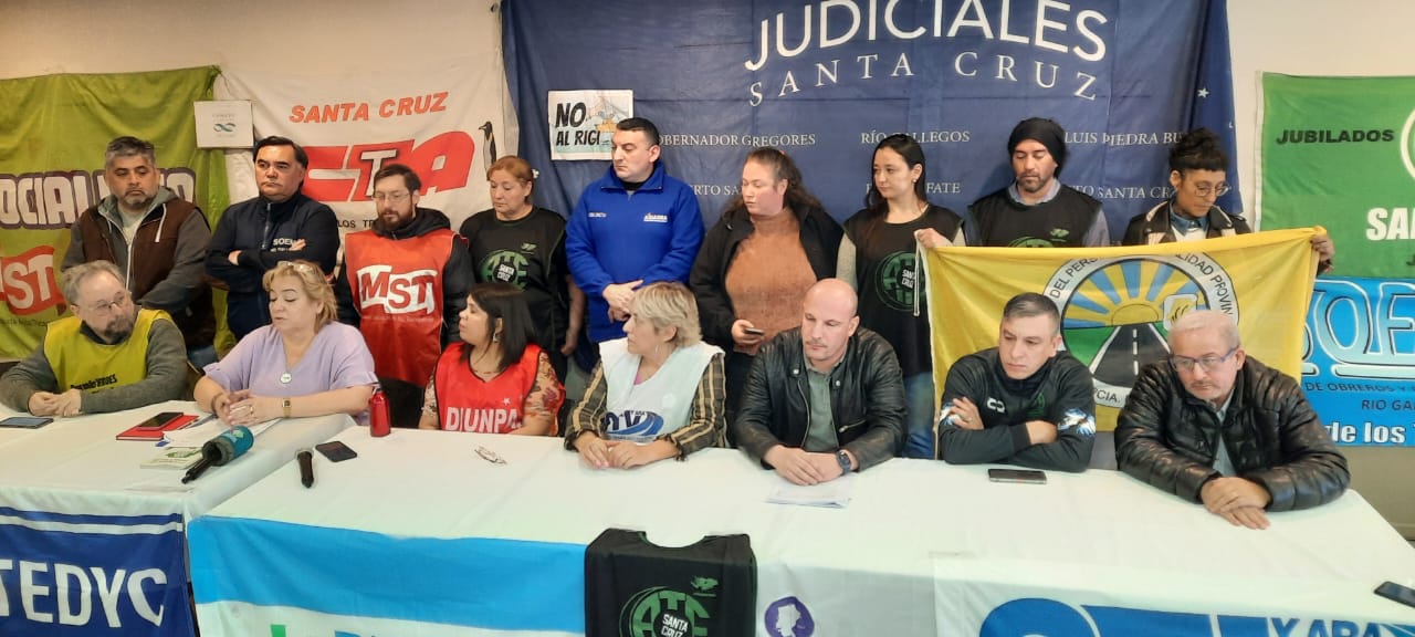 Estas entidades son: el Sindicato de Camioneros de Santa Cruz; Asociación Bancaria Seccional Santa Cruz; Asociación Trabajadores del Estado (ATE) Santa Cruz; Sindicato de Obreros y Empleados Municipales (SOEM) Río Gallegos; Sindicato Petroleros Cuenca Austral; Asociación Gremial de Empleados Judiciales de la Provincia de Santa Cruz; Sindicato Jerárquico Petrolero; Sindicato de Trabajadores Viales y Afines de la República Argentina (STVyARA); Sindicato del Personal de Vialidad Provincial; Asociación de Trabajadores de la Universidad Nacional de la Patagonia Austral (Atunpa); Unión de Trabajadores del Turismo, Hoteleros y Gastronómicos de la República Argentina (UTHGRA) Santa Cruz; Sindicato de los Trabajadores y Trabajadoras de la Anses (SECASFPI); Unión Trabajadores de Entidades Deportivas y Civiles (UTEDYC) Seccional Santa Cruz; Sindicato de Trabajadores de la Industria de la Construcción (SITRAIC); Sindicato de Ceramistas; Federación Argentina de Remises (FAREM) y Federación Nacional de Conductores de Taxi, Sindicato de empleados de comercio, ADIUNPA, APOPS, MST, Red ecosocialista, Centro de estudiantes de la UNPA.